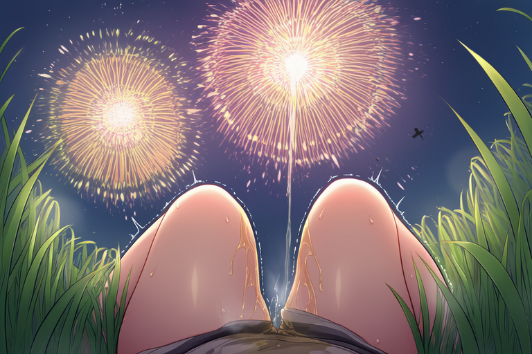 少女の尿が噴き出すのと同時に、花火が上がって河原を明るく照らした。